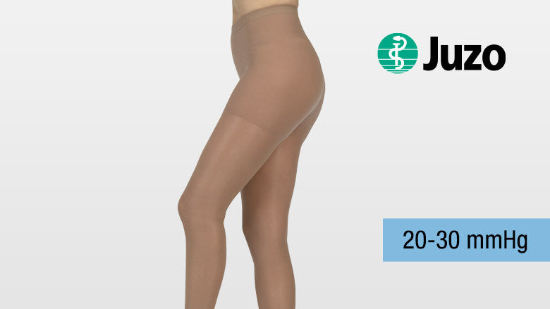 Juzo Naturally Sheer pantyhose compression stockings are beautifully sheer and fashionable. Naturally Sheer compression stockings are also ideal for reducing swelling and increasing circulation in your legs. Available in medium 20-30 mmHg compression. Naturally Sheer comes in many great colors to match any wardrobe. You can also choose to have an open toe style.