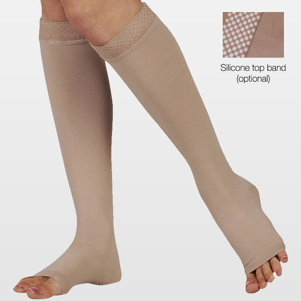 Juzo Soft is the softest compression stocking made by Juzo. The smooth-knit stockings are made with high quality Lycra fibers and is best stocking for everyday wear. Juzo Soft compression stockings are latex free.
