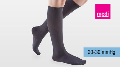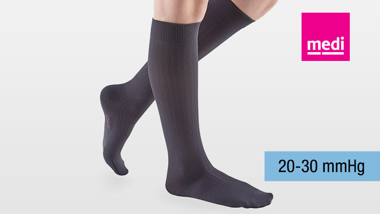 Comfortable and stylish, the Mediven Vitality for Women knee high compression sock will give you the benefits of compression therapy without compromising comfort. This breathable and durable sock is great for everyday wear and active exercise. Classic herringbone knit pattern looks great in every occasion. MediGrip technology helps keep the top band from sliding down.
