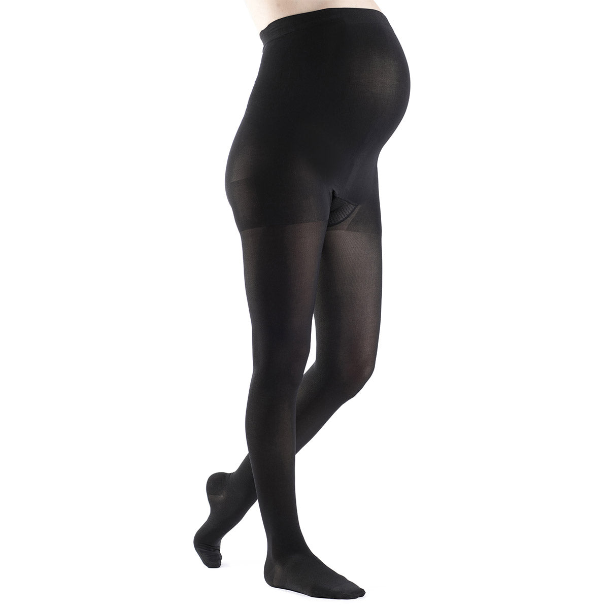 Sigvaris Soft Opaque Maternity Pantyhose compression stocking has an expandable waist, and is a good alternative to thigh high and standard control top pantyhose. This fashionable opaque stocking looks great and the graduated compression increases blood flow to your legs to help you feel less tired. The stocking is composed of a very soft, double knit microfiber yarn, giving you full medical efficacy without compromising comfort.